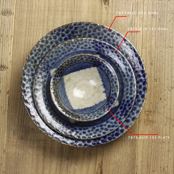たすき掛けした紺呉須の色合いや、四角く残したイラボ釉薬の印象が抜群です。